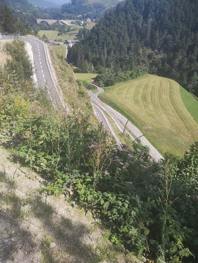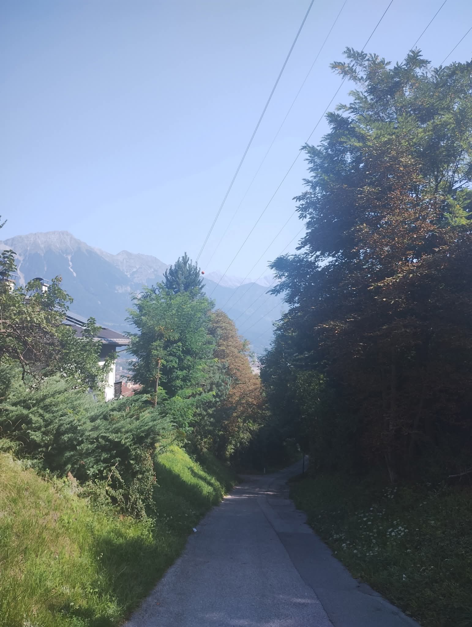 Het dal van de Inn is voorzien van een vrijliggend fietspad, wel jammer dat het pad net naast de snelweg ligt. Ook vloog er een binnenkomend vliegtuig over, ik kon bijna de piloot zien zo laag vloog hij, oorverdovend.