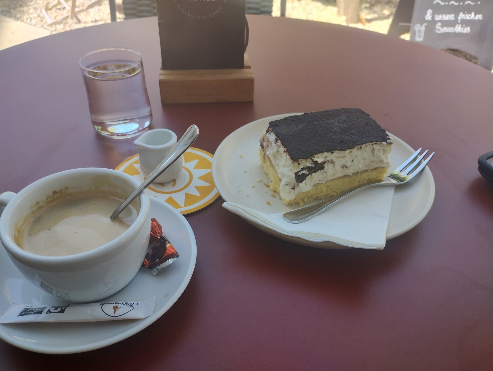 Eenmaal boven aangekomen liep het nog geleidelijk op, maar dat was een makkie. Koffie met gebak als beloning.